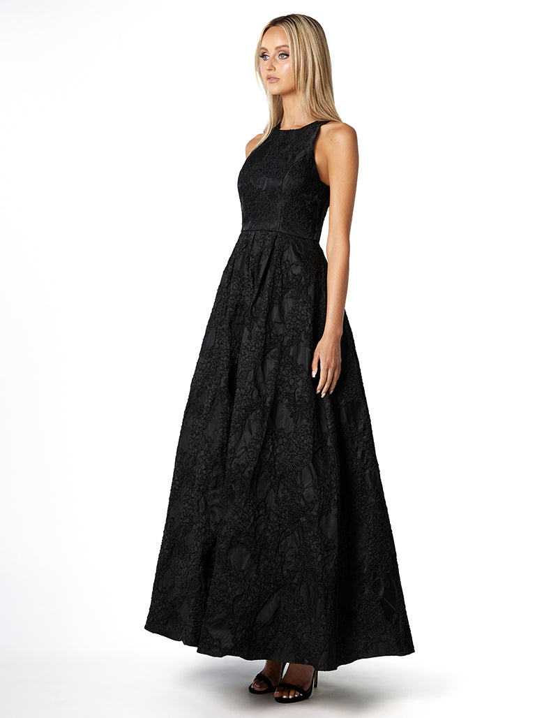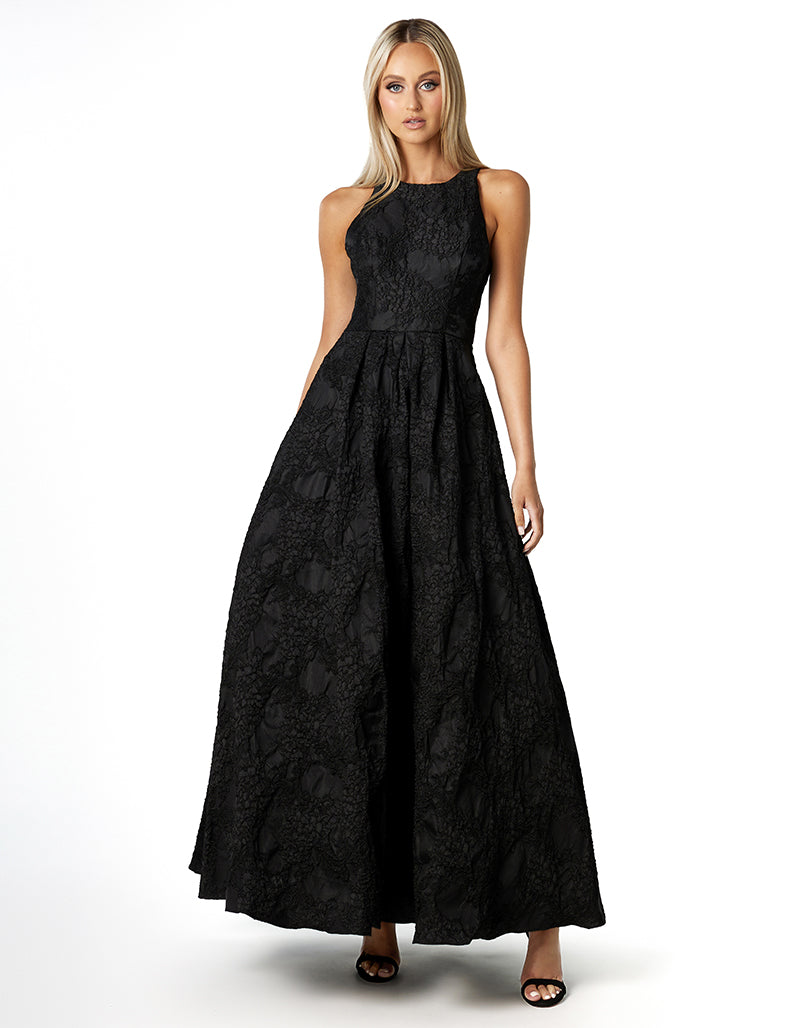 Elevate your occasionwear with our exquisite AMALIE A LINE MAXI, perfect for weddings or a day at the races. This sophisticated design features a covered neckline and tapered waistline, ensuring a flattering silhouette. The full-length A-line skirt is adorned with waist pleats for a touch of elegance, while practical side pockets add functionality. Crafted with stiff mesh interlining, it offers a voluminous look that maintains its shape all day. Whether you're celebrating at a wedding or enjoying a day at the races, this dress combines timeless style with comfort, making it an essential addition to your wardrobe.