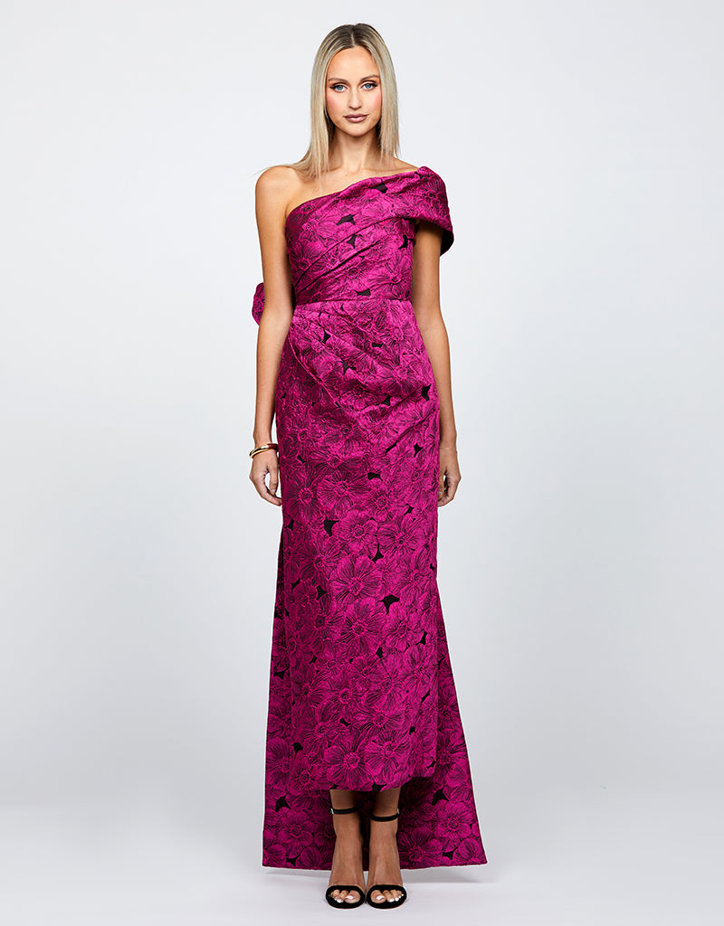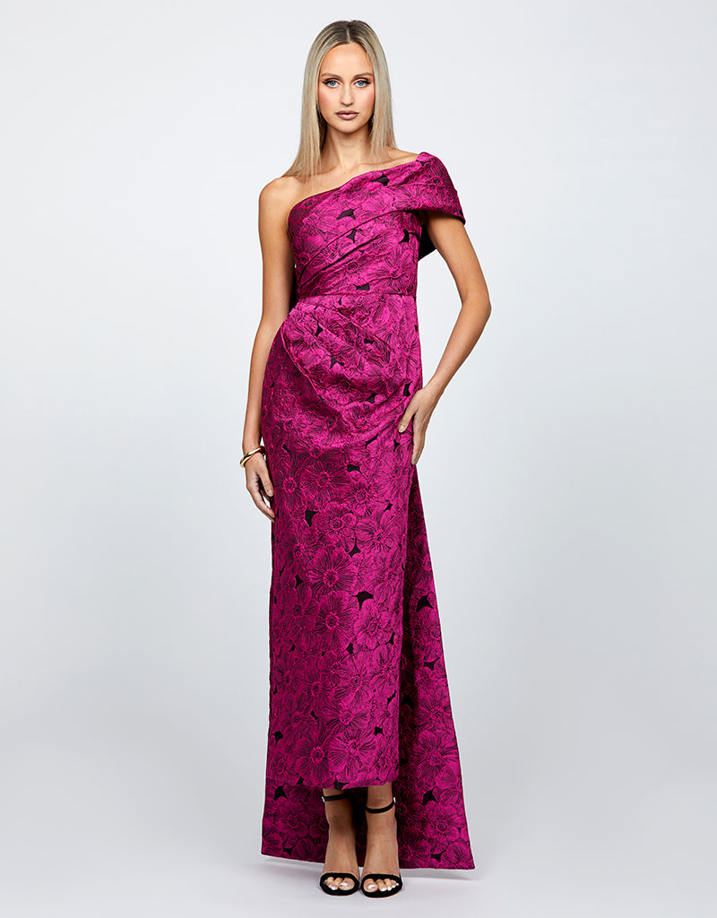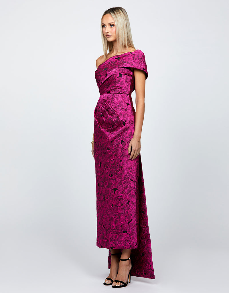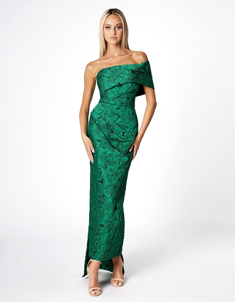 Introducing our elegant AMYILYA OFF SHOULDER MAXI dress, a symphony of grace and sophistication, perfect for weddings and gala events alike. The design details such as pleated overlay on the bust and a single off-shoulder sleeve exudes sophistication. Embrace the fitted bodice with tucks detail, sculpting your silhouette with finesse. The column style maxi skirt, featuring side front tucks, offers both movement and style. Finished with a sculptural back bow train and skirt split, this ensemble is a true masterpiece, ensuring you're the epitome of sophistication at any occasion.