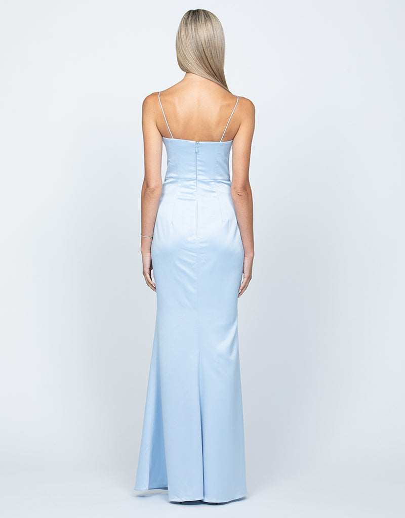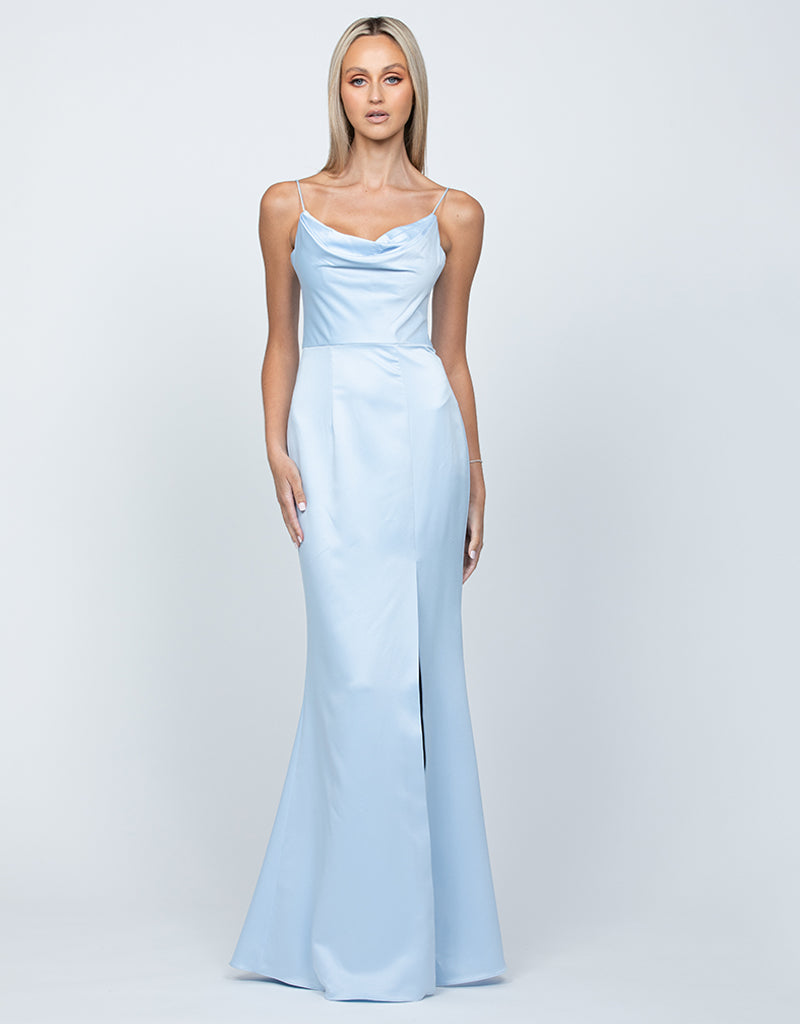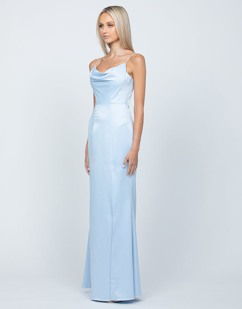 Our best selling silhouette is now available with a close-back for even more support and bra-strap coverage. A slim fit bias-cut satin gown, on-trend cowl neckline and front side split to show off your heels!