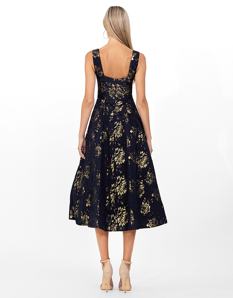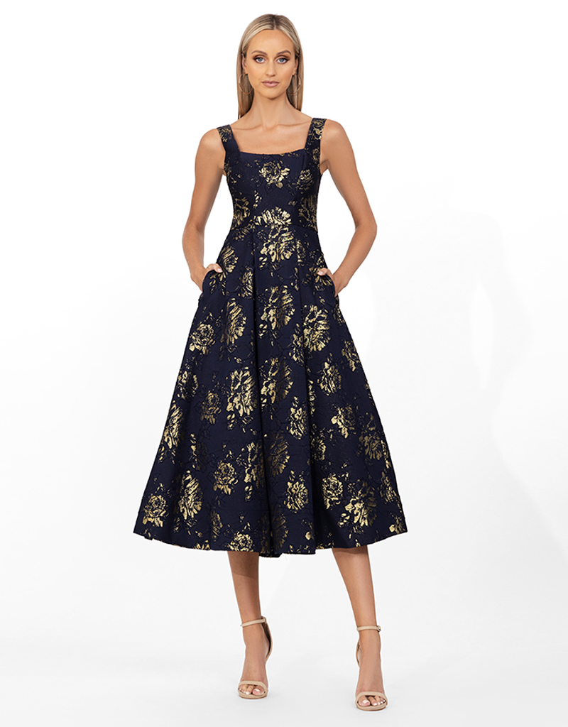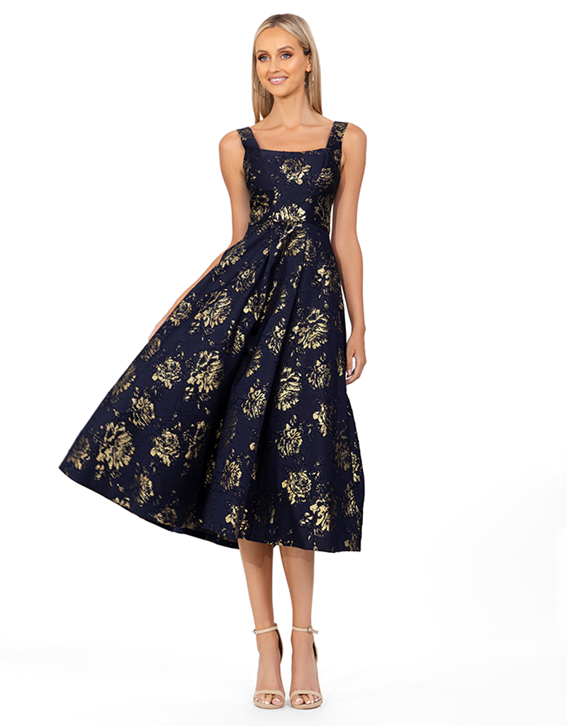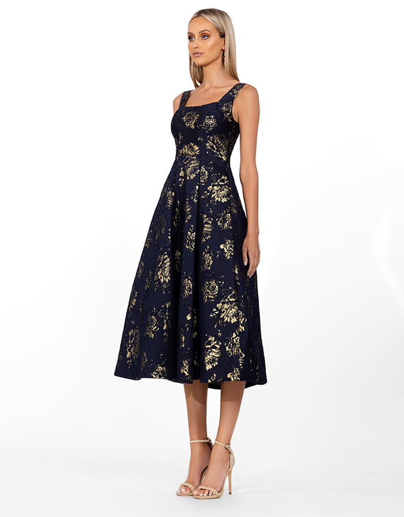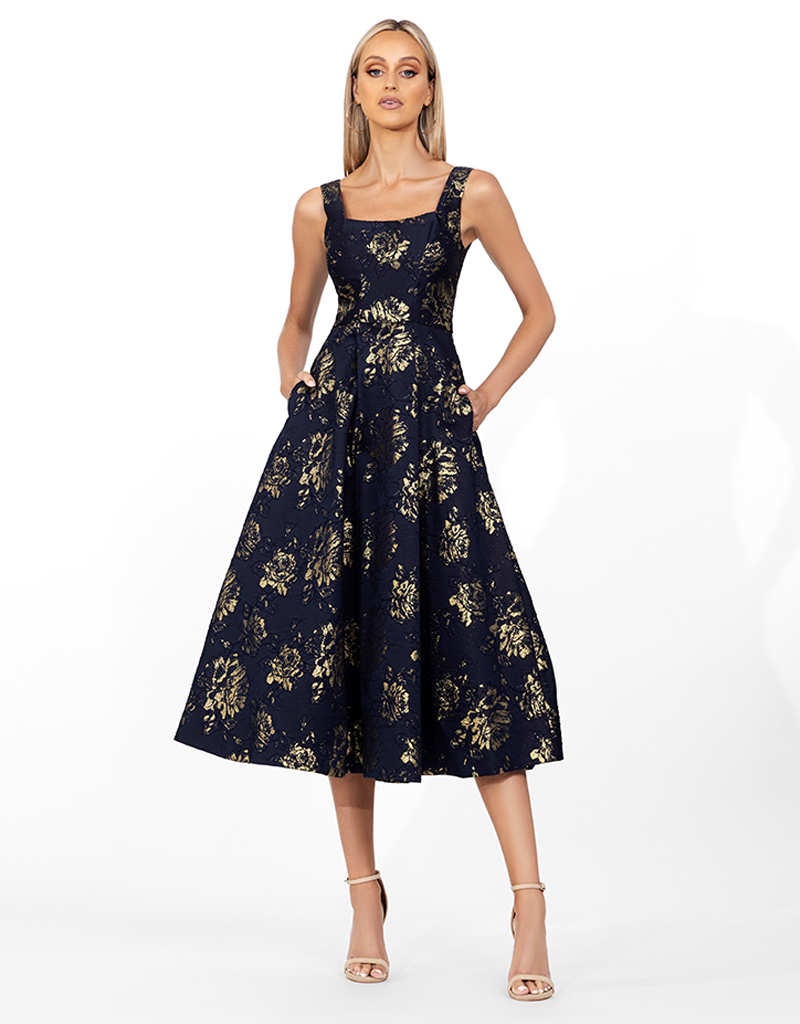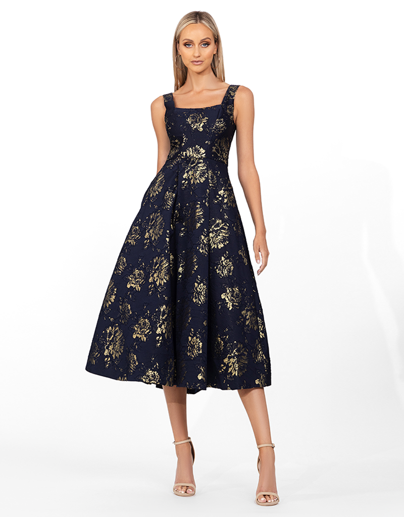 Feel sophisticated in the LEA A LINE MIDI. Flatter yourself with a squared neckline, thick supportive straps, fitted waist to show off your feminine curves and fun tea length skirt to float through the night. Don't forget the statement neckline or earrings to add some glam to your look.