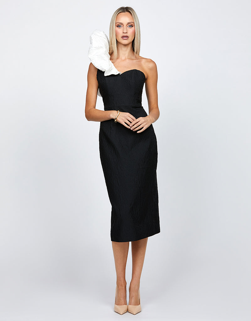 LINDY ONE SHOULDER PUFF MIDI BL71D05S