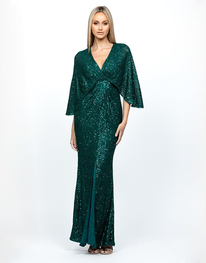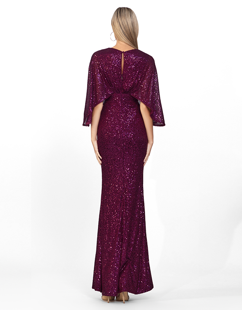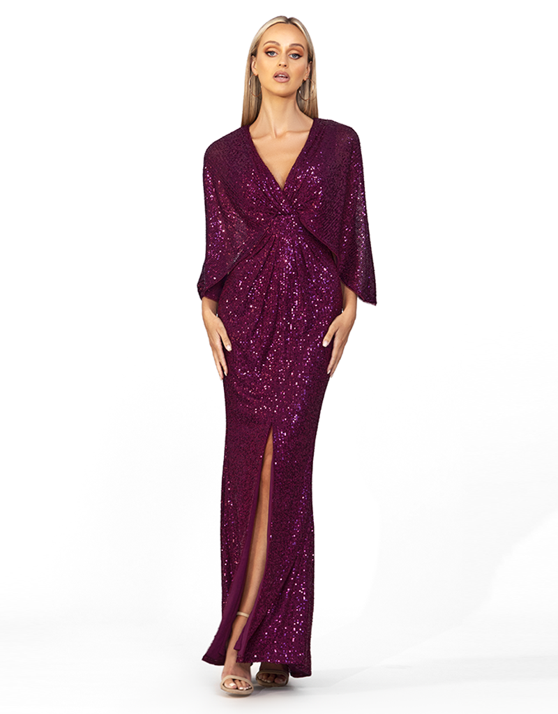 The Oprah Cape Gown has very quickly become a fan favourite. Due to her sophisticated and polished nature, she flatters the body and will ensure you leave your mark at any event. A light batwing sleeve has been balanced beautifully with a draped waist panel and draped skirt with a slight tummy cover. Chic, yet comfortable she is a must!