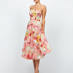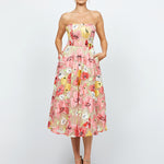 The Amanda dress is the perfect mix of elegance and charm, featuring a straight-across strapless neckline for a timeless silhouette. The structured bodice with built-in cups provides a secure and flattering fit, while the A-line midi skirt adds a touch of grace and movement. Crafted from delicate embroidered mesh with floral detailing, this dress is beautifully textured and effortlessly romantic. Finished with an invisible back zip closure and full lining, the Amanda is a dreamy choice for any special occasion