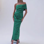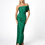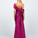 Introducing our elegant AMYILYA OFF SHOULDER MAXI dress, a symphony of grace and sophistication, perfect for weddings and gala events alike. The design details such as pleated overlay on the bust and a single off-shoulder sleeve exudes sophistication. Embrace the fitted bodice with tucks detail, sculpting your silhouette with finesse. The column style maxi skirt, featuring side front tucks, offers both movement and style. Finished with a sculptural back bow train and skirt split, this ensemble is a true masterpiece, ensuring you're the epitome of sophistication at any occasion.