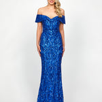 Shine bright in this show-stopping sequin gown! Featuring a chic off-shoulder neckline with a stylish short sleeve fold, a boned bodice with built-in cups for a flawless fit, and a dramatic fishtail skirt with a back train. Fully lined with an invisible zip closure, this dress is designed for the ultimate red-carpet moment. Make your night unforgettable!