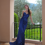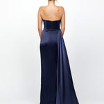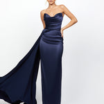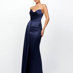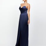 Sleek and sophisticated, this strapless gown is crafted from luxurious thick stretch satin to effortlessly contour and flatter your silhouette. Featuring a classic sweetheart neckline with soft gathered bust detailing, the structured bodice includes boning and bust cups for added support and shape. The full-length column skirt creates an elegant, elongated look, while a side sash adds a modern, draped finish. Fully lined and complete with an invisible back zip, this gown is the perfect blend of timeless glamour and contemporary style.