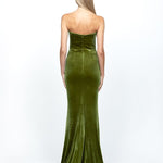 You'll feel draped to perfection in the CASEY. The CASEY will take you from occasion to occasion with removable sleeves that allows you change up your look. Draped bodice, front side split and off shoulder sleeves will have you showing off your silhouette and some sultry skin, even in the cooler months. Pair with a neutral heel to allow the luxe-velvet fabric take credit for your ultimate outfit.