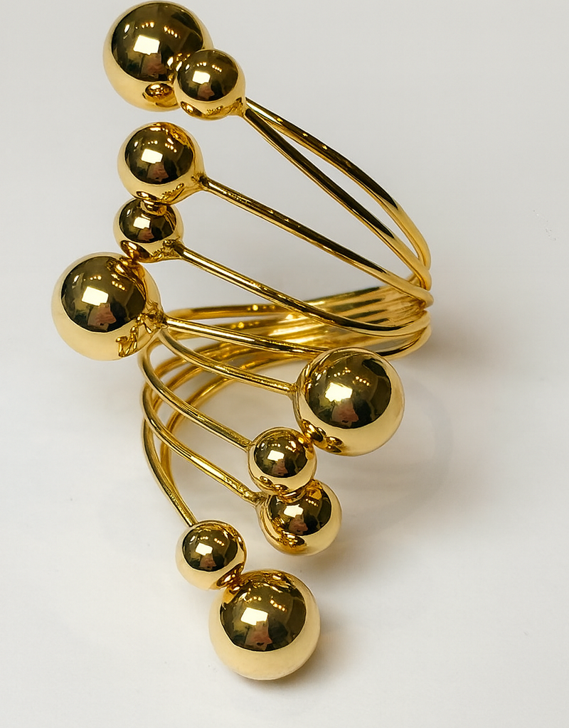 Elevate your everyday style with the Celestia Cascade Orb Ring™, a statement piece designed to capture the beauty of sculptural simplicity. Featuring a series of polished gold-toned spheres that arc gracefully across the finger, this ring brings a modern, celestial charm to any look. Its open, multi-band structure adds depth and dimension, making it the perfect accessory for fashion lovers who adore bold silhouettes with a touch of sophistication.