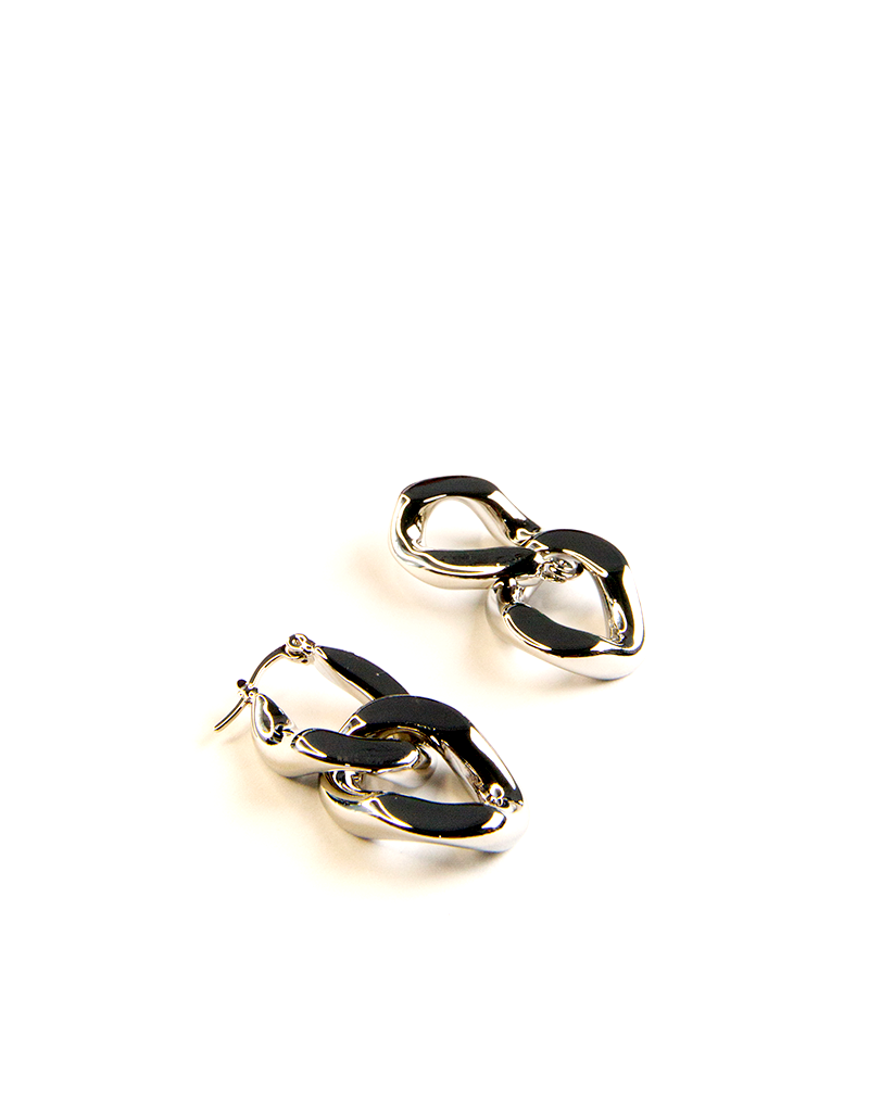 These drop earrings feature a captivating interlocking smooth chain design that exudes sophistication and style. The silver tone plating provides a polished and versatile finish, making these earrings suitable for both casual and formal occasions.