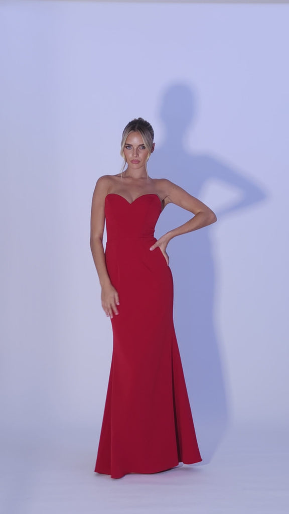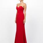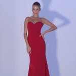 Classic elegance meets modern structure in the Strapless Lace-Up Fishtail Gown. Designed with a flattering sweetheart neckline, this gown features a fitted bodice with supportive boning and a lace-up back that adds both adjustability and a touch of drama. The full-length fishtail skirt hugs the body before flaring gracefully at the hem, creating a sleek and sophisticated silhouette. Crafted from thick poly fabric for a smooth, sculpted finish, and fully lined with an invisible back zip, this gown is perfect for black-tie events and formal soirées.