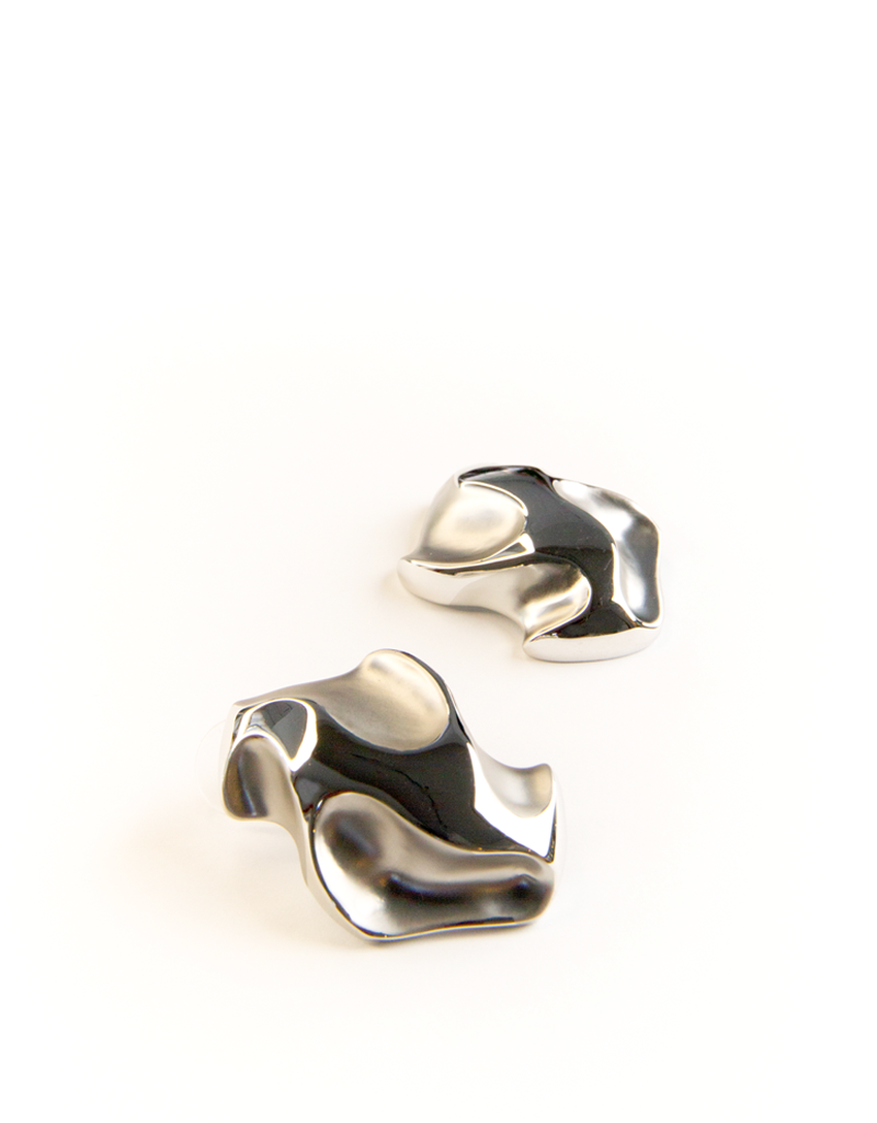 EVERLY WARPED CHUNKY STUD EARRINGS SILVER