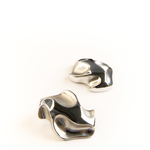 Featuring a striking warped 3D surface texture, these stud earrings offer a modern and bold aesthetic. The silver-tone plating adds a touch of elegance, making them perfect for both everyday wear and special occasions.