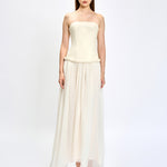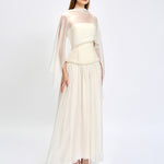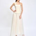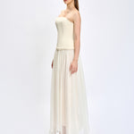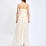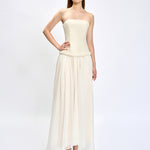 Modern and chic, this strapless mini dress is crafted from luxurious crepe and chiffon for a structured yet lightweight finish. Featuring a straight-across neckline and a fitted bodice with a dropped waist, it flatters the silhouette with clean lines. The braided detail at the drop waist adds a unique, sophisticated touch, while the fully lined construction and invisible back zip ensure comfort and a seamless fit. Perfect for cocktail parties, evening events, or any occasion where you want to make a statement.