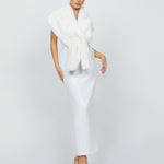 Elevate your look with this luxurious fur shawl, designed for both warmth and glamour. Featuring a twisted wrap front detail, it offers a chic and elegant drape that can be worn on or off the shoulder for versatile styling. The hook and eye fastening ensures a secure fit, while the full satin lining provides a smooth and comfortable feel. Perfect for layering over evening gowns or special occasion outfits, this timeless piece adds a touch of sophistication to any ensemble.