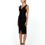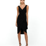 Fitted to perfection, the Helena will be your new favourite midi. Wrapped neck, with a matching v back, wrapped skirt and empire waist with a fitted knot.