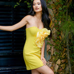 Turn heads with this stunning mini dress, designed for those unforgettable nights out. Featuring a sweetheart neckline adorned with a dramatic rosette, it brings a touch of romance and flair to your look. The fitted bodice, complete with built-in boning and bust cups, ensures a flattering and supportive fit. Made from fabric with slight stretch, it offers both comfort and a sleek silhouette. Fully lined at the bodice and skirt, it guarantees a smooth and luxurious feel against your skin. An invisible zip closure at the back ensures a seamless finish. Perfect for making a bold statement, this dress is the epitome of modern elegance.