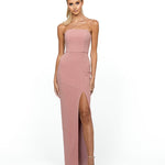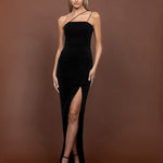 Glitter the night away in comfort in the Iman. The glitter jersey will add a subtle touch of sparkle the tonal stretch jersey, while the asymmetric neckline and front side split will make sure you are never short of showing off detail and a little skin. Show off your favourite statement shoe or allow the dress to do all the talking in a neutral strappy heel.