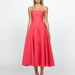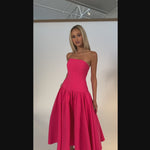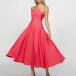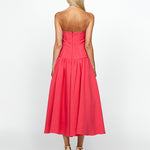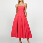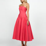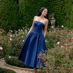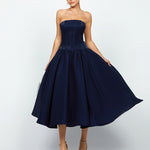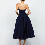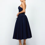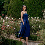 Embrace sophisticated allure with our KASSIDY A LINE MIDI, featuring triangular thick straps that frame elegantly. The corset detail at the bodice accentuates your silhouette, ensuring a flattering fit. A midi skirt with pleat detail and side pockets offers both style and convenience, perfect for carrying essentials. Fully lined for comfort and finished with an invisible zip closure at the back, this dress combines seamless elegance with practicality. Ideal for a variety of occasions, from formal dinners to cocktail parties or daytime events, it's a versatile piece that effortlessly transitions from day to evening with timeless grace.