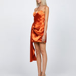 Finished with an invisible back zip and fully lined for comfort, this dress is crafted from luxurious drape satin for a smooth, flowing feel.