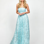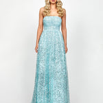 Make a glamorous statement in this breath-taking sequin mesh ball gown, designed to captivate from every angle. Featuring a flattering straight-across neckline and built-in cups for a supportive, seamless fit, the structured bodice is adorned with all-over pleat detailing that adds texture and dimension. The full-length ball gown skirt flows dramatically, enhanced with a stiff mesh interlining layer to create a voluminous, show-stopping silhouette. The invisible back zip closure ensures a sleek, streamlined look, while the full lining provides comfort and structure throughout the night.