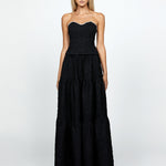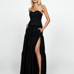 Discover timeless elegance with our KERRERA TIERED HIGH SPLIT MAXI SKIRT BL69B13L. Crafted with a multi-tiered A-line design and delicate gather detail, it exudes feminine charm. The thick waistband ensures a flattering fit, complemented by convenient side pockets for practicality. Fully lined for comfort, this skirt seamlessly combines style with functionality. The Kerrera skirt is a versatile addition to your wardrobe, on its own or as a set when paired with JULIE FITTED DIAMANTE CORSET TOP BL69T12.