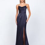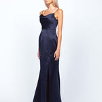 Our best selling silhouette is now available with a close-back for even more support and bra-strap coverage. A slim fit bias-cut satin gown, on-trend cowl neckline and front side split to show off your heels!