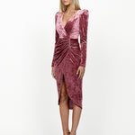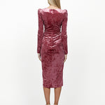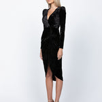 Step into the spotlight with the Lina Long Sleeve dress, a vision of elegance crafted from sumptuous velvet. The deep wrap bodice cinched at the waist with delicate ties, paired with your favourite shoes, elevates your presence at every occasion, from grand ballroom parties to intimate soirées, ensuring each dance is a mesmerizing display of style and refinement with your partner.