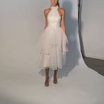 Sheer sheen organza is an HQ favourite and is seen here in the Milky way, this dreamy midi is a daydream we do not want to forget. Lightweight, and durable this piece is one that will be an eternal classic in any photo. Whether you're a contemporary bride, or just love monochromes, we've got you covered.