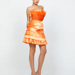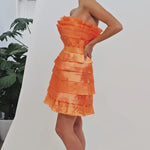 Make a chic statement in this elegant mini dress, perfect for any special occasion. The straight across neckline design offers a timeless and sophisticated look. Tiered pleated detailing adorns both the bodice and skirt, adding texture and dimension to the ensemble. A waistband detail accentuates your figure, creating a flattering silhouette. Crafted from fabric with no stretch, this dress ensures a structured fit and maintains its shape throughout the night. Fully lined at the bodice and skirt, it provides comfort and coverage. An invisible zip closure at the back ensures a seamless finish. Embrace classic elegance with a modern twist in this stunning dress.