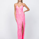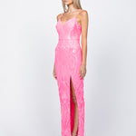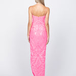 Allow us to introduce the Rowie Plunge Neckline Gown, a dress that's ready to make a striking impression at any event with its captivating left leg split opening and intricate pattern sequins. This gown is your ticket to an elevated look that guarantees you're the center of attention at every gathering.