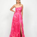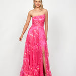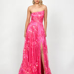 Make a bold entrance in this dazzling sequin ballgown! Featuring an elegant asymmetric strapless neckline and a structured boned bodice with built-in cups for a flawless fit, this gown brings glamour to any formal event. The full-length A-line skirt with a daring high side split adds a modern twist, while the invisible back zip and full lining ensure comfort and style.