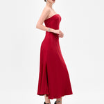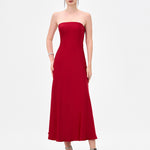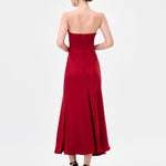 Effortlessly refined, this strapless midi dress is all about sleek sophistication. Featuring a straight-across neckline and a detachable satin scarf for versatile styling, it’s cut on the bias to skim your curves and gently flare at the hem. Crafted from fluid drape satin and fully lined with an invisible back zip, this elegant piece is perfect for modern minimalists with a love for timeless glamour.