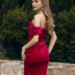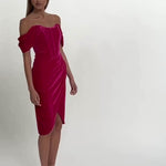 This sexy velvet midi is perfect for any occasion. The boning in the dress gives this dress a sexy feel as well as the slit going up to the thigh. Pair with strappy heels, drop earrings, and a loose ponytail for the perfect look.