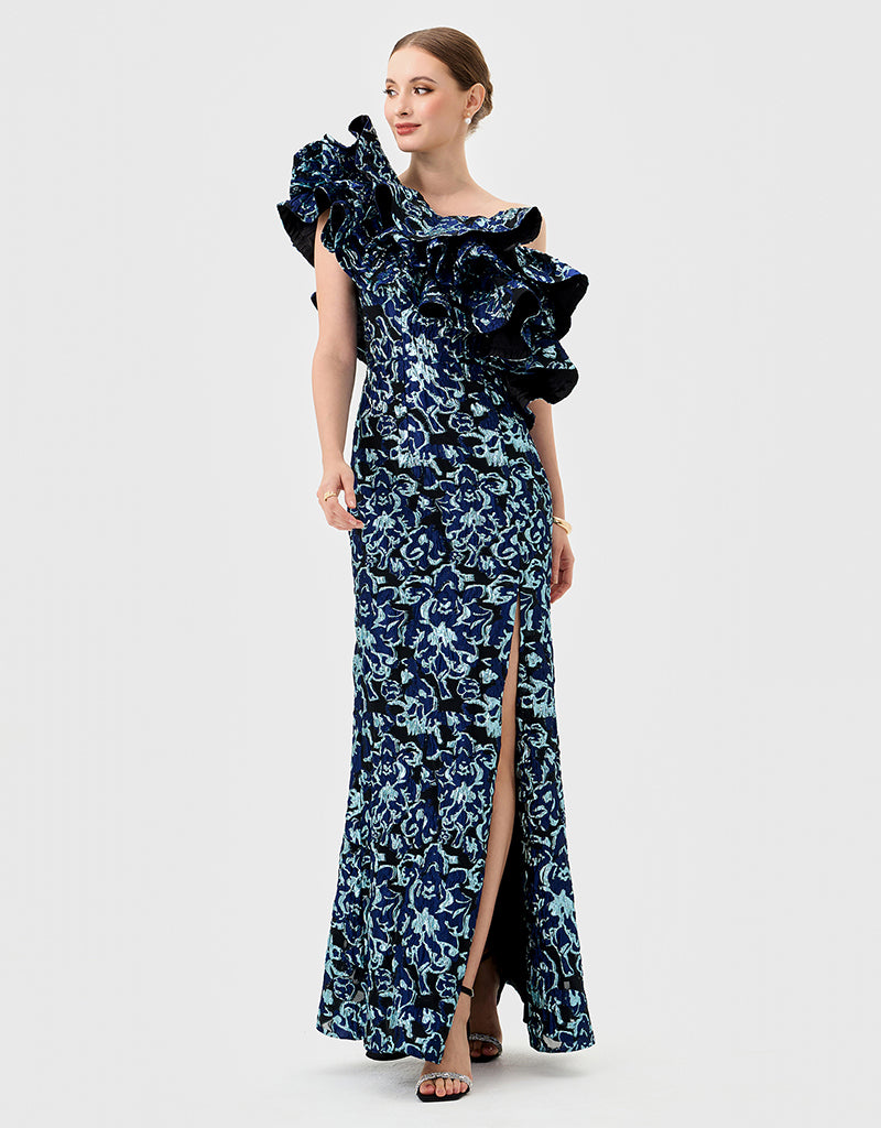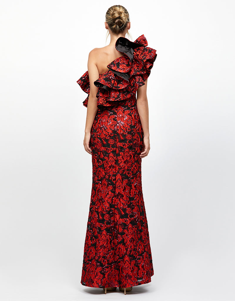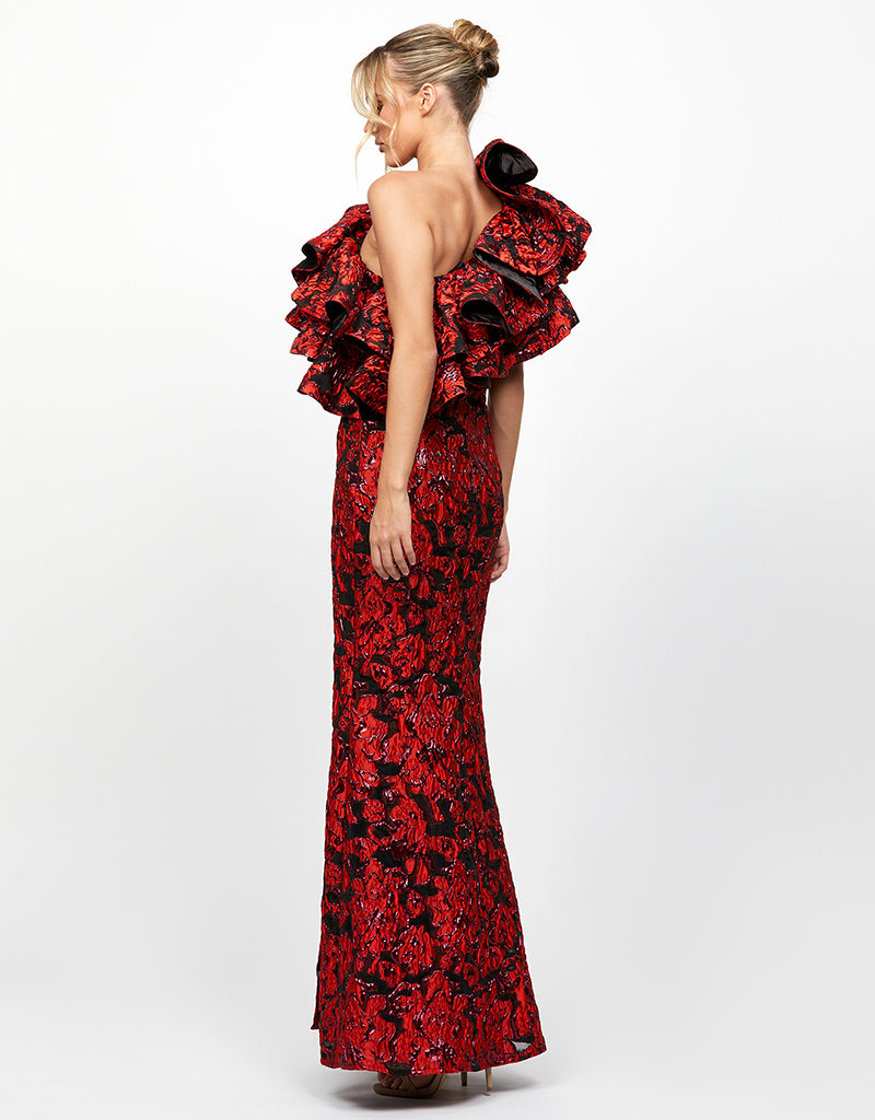 LETTY ONE SHOULDER RUFFLE GOWN B77D45L