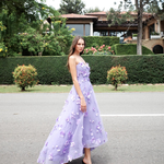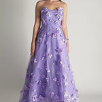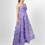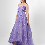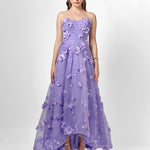 Float through your next special occasion in the enchanting Strapless Hi-Lo Floral Gown. Featuring a structured, boned bodice with built-in cups and a soft scoop neckline, this design blends elegance with modern femininity. The standout hi-lo skirt is crafted from dreamy 3D floral mesh and finished with a crinoline hemline for added volume and flair. Fully lined and complete with an invisible back zip, this gown offers both comfort and drama with every twirl.
