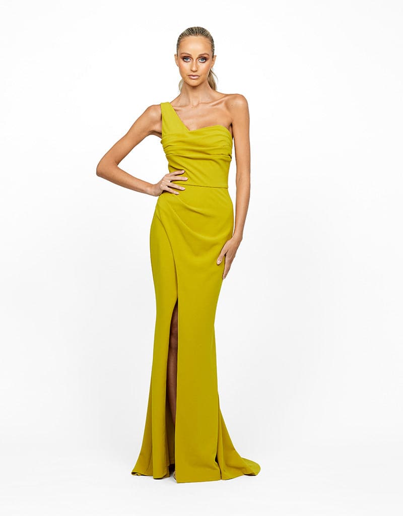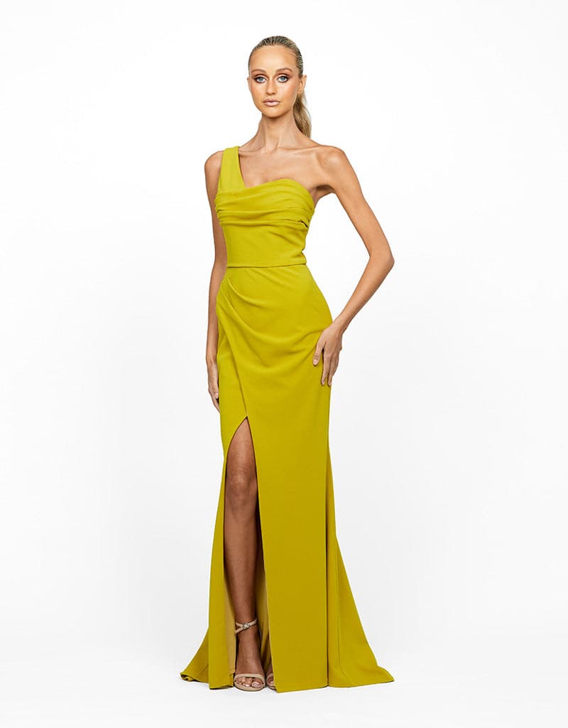 An HQ favourite, The Star Draped Gown has finally arrived. Available in a unique cItronelle yellow and a classic Navy, this figure-hugging piece features a draped wrap panel skirt and train. We've perfectly topped this style off with a one-shoulder neckline and draped bustline that add just a touch of classic sophistication.