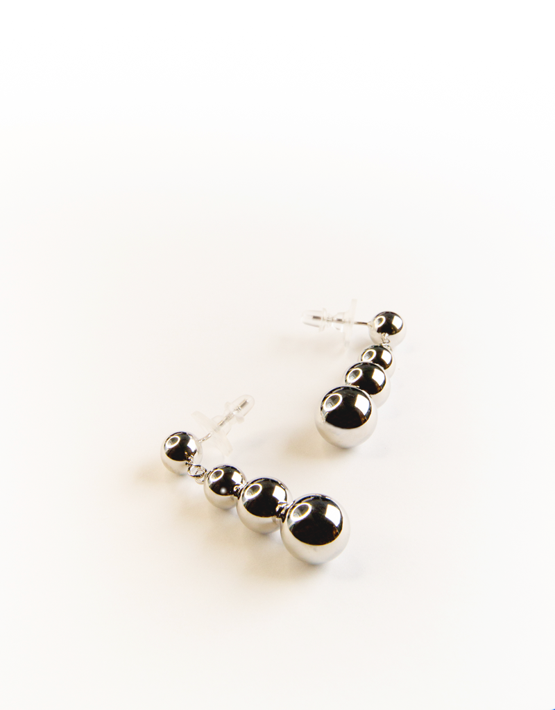 Crafted with smooth silver-tone plating, these earrings exude elegance and grace. The pearls ascend in size, creating a captivating and sophisticated design that adds a touch of glamour to any outfit.