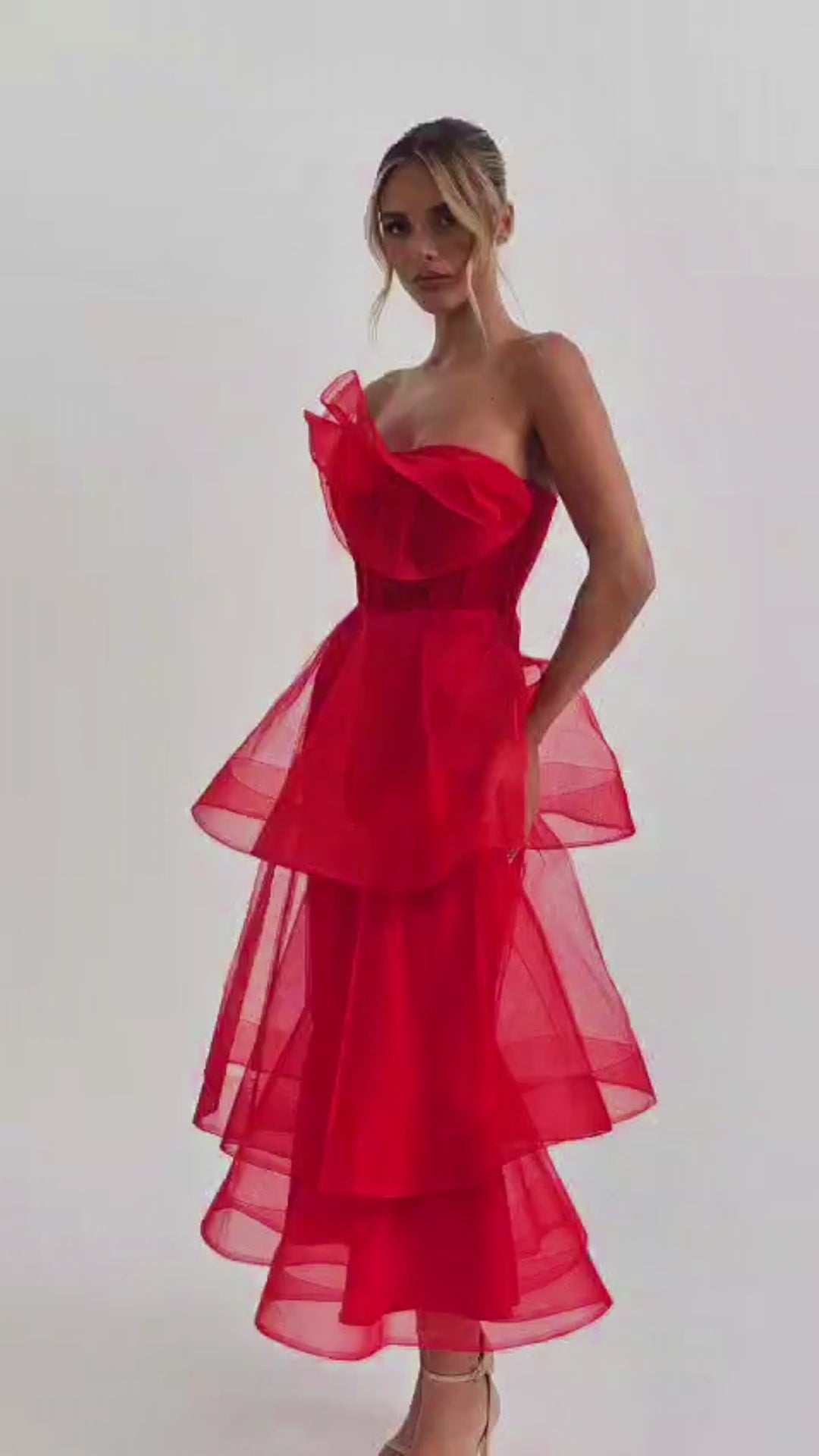 MADE TO ORDER -KASCADE TIERED RUFFLE MIDAXI B68D07L
