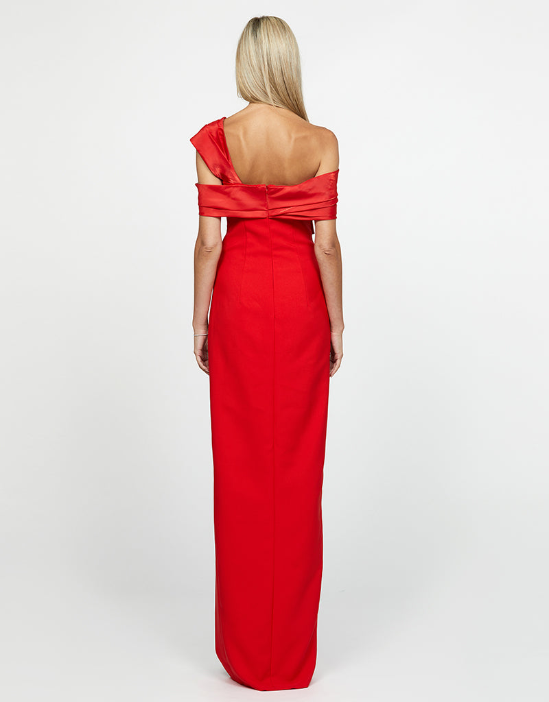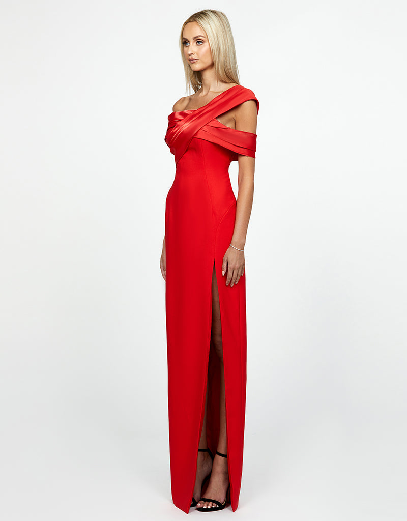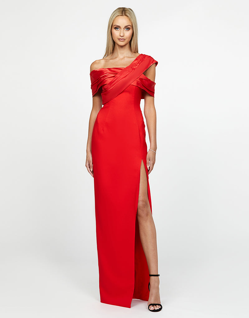 Straight across one shoulder neckline