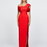 Crossover organza drape overlay at bust and sleeves