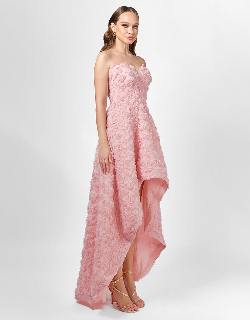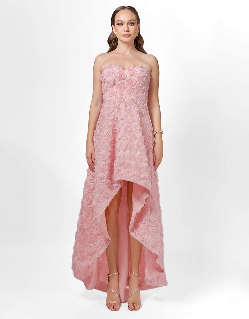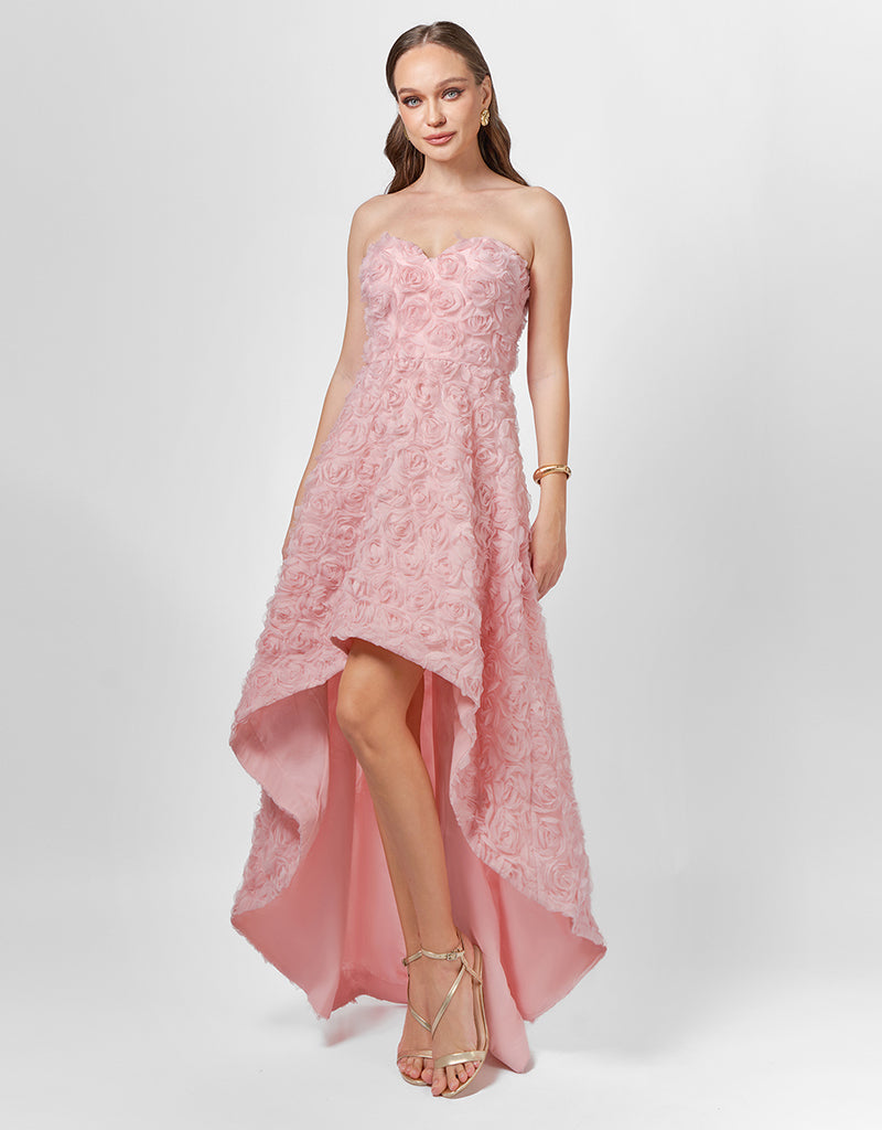 JEMMA STRAPLESS ROSETTE HI LO DRESS SAMPLE BL75D09HL