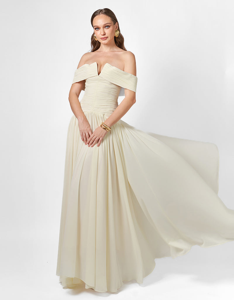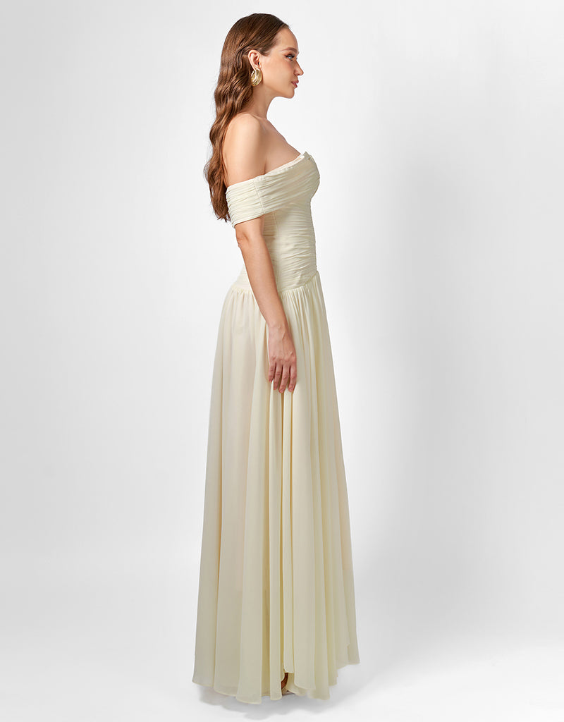 KEECIA OFF SHOULDER CHIFFON GOWN B77D74L