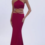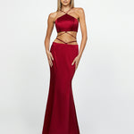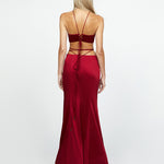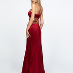 Make a striking impression at prom or a seductive night out in the captivating INTY TWO PIECE STRAPPY GOWN. This two-piece gown set is designed to exude sensuality and allure. The top showcases an enticing arrow neckline and elegant neck straps, creating a sleek and provocative silhouette. The exposed waist with crossover strap detailing adds a daring touch, accentuating your curves beautifully. Built-in bust cups provide support and shaping for a flattering fit. Complete your look with the sultry open lace-up back, adding drama and allure. Perfect for a sexy evening ensemble, this set effortlessly combines style and confidence, ensuring you stand out and turn heads wherever you go.