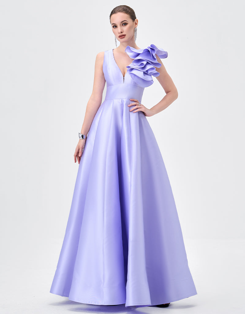 CRESSIDA RUFFLE SHOULDER GOWN B83D0140