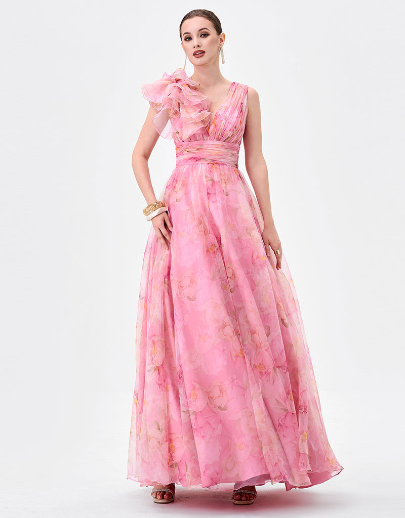 MIRELLA V NECK RUFFLE GOWN B83D01104
