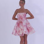 Playful yet polished, this mini dress is crafted from intricate 3D embroidered beaded net lace and mesh for a beautifully textured finish. Featuring a clean, straight-across neckline, the structured bodice is designed with built-in cups and boning for a supportive, sculpted silhouette. The A-line mini skirt adds a flirty touch with its crisp shape and flattering fit. Fully lined and finished with an invisible back zip closure, this standout piece is perfect for cocktail parties, bridal events, or special celebrations.
