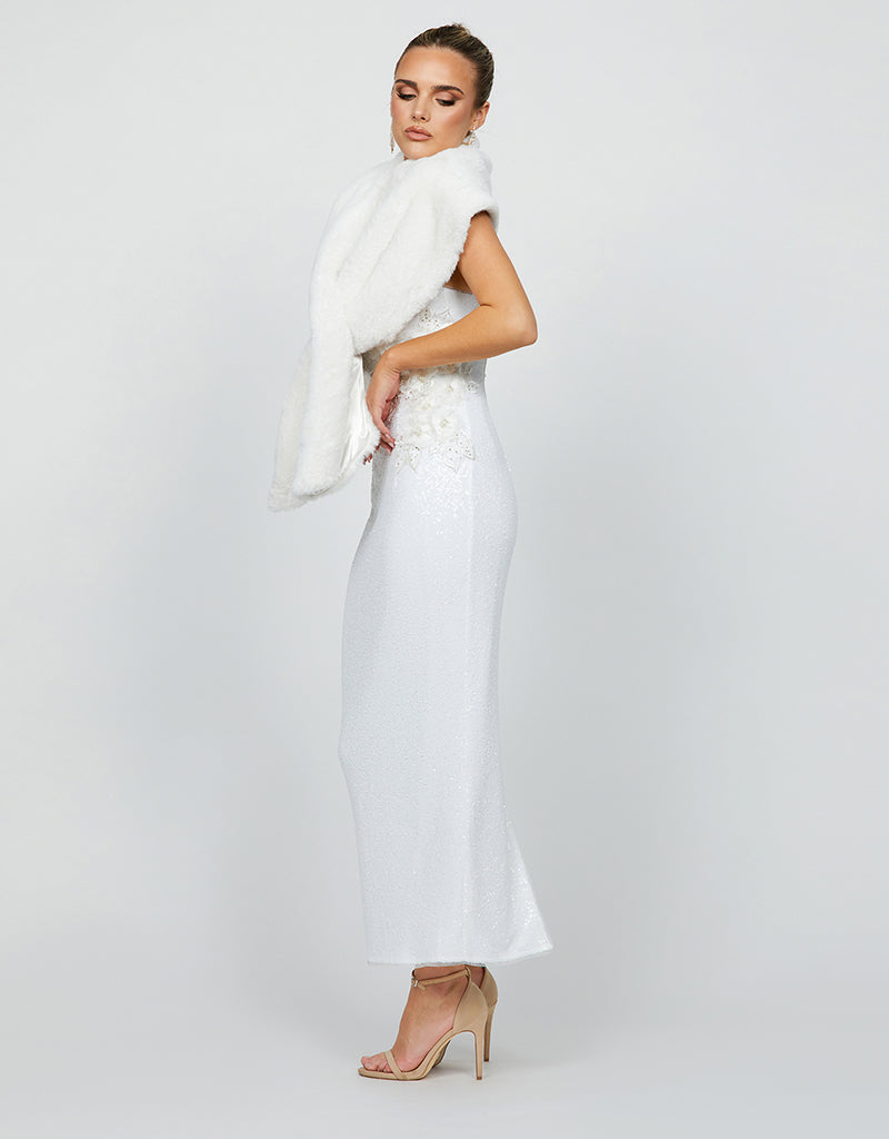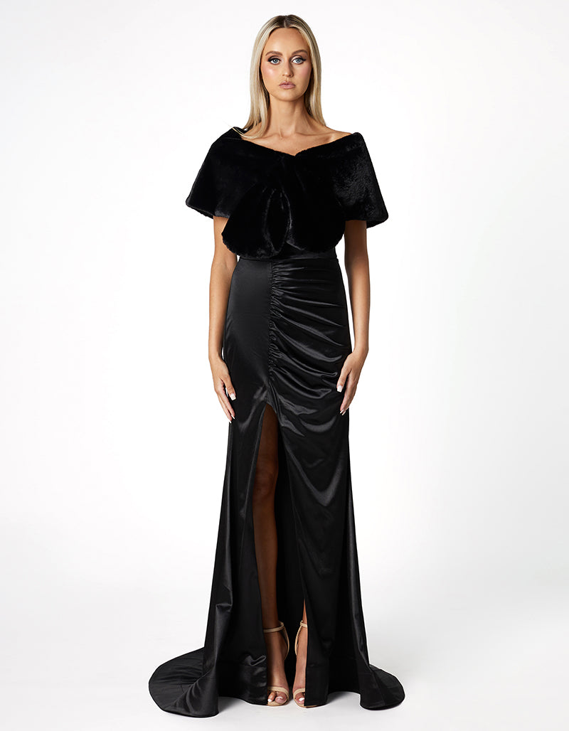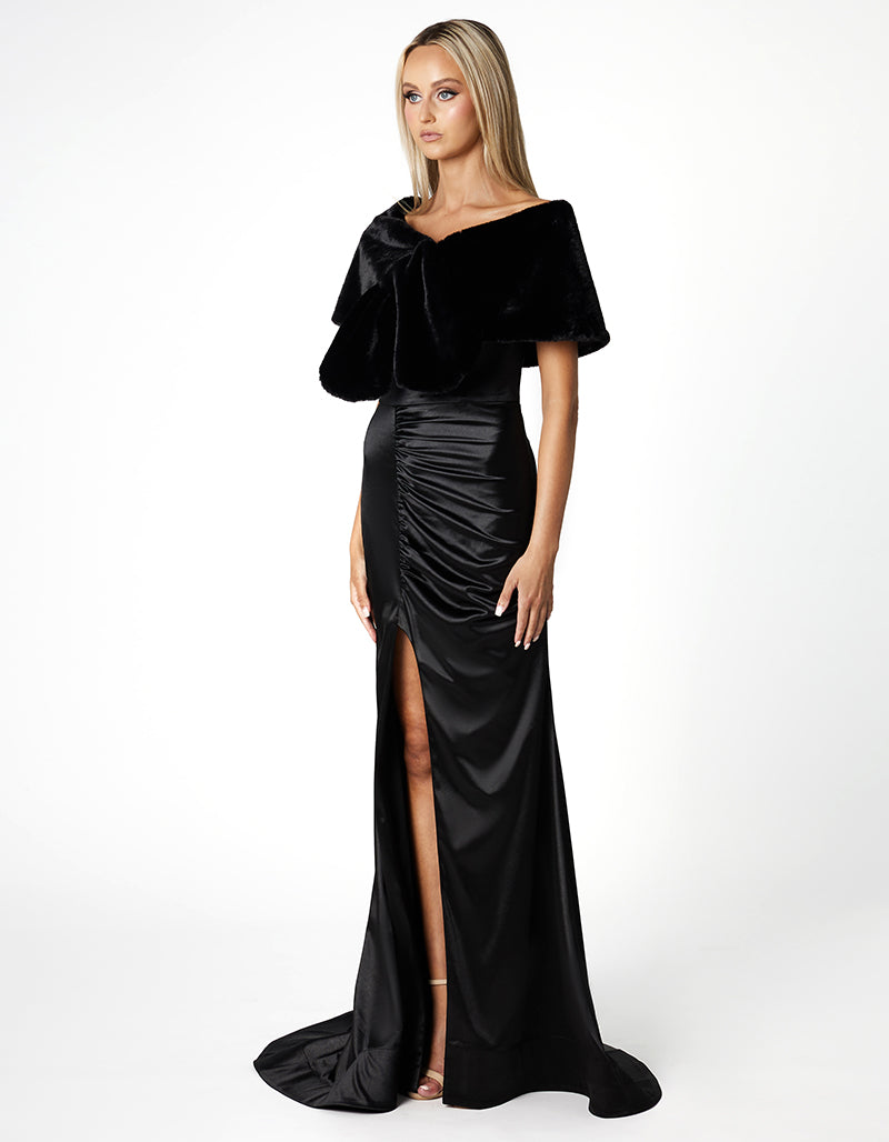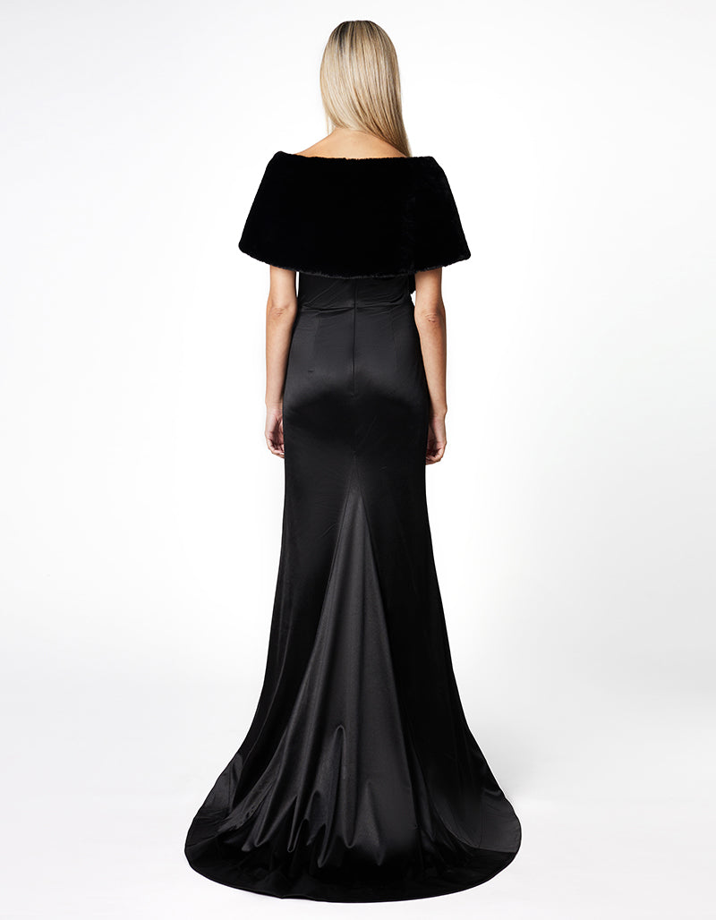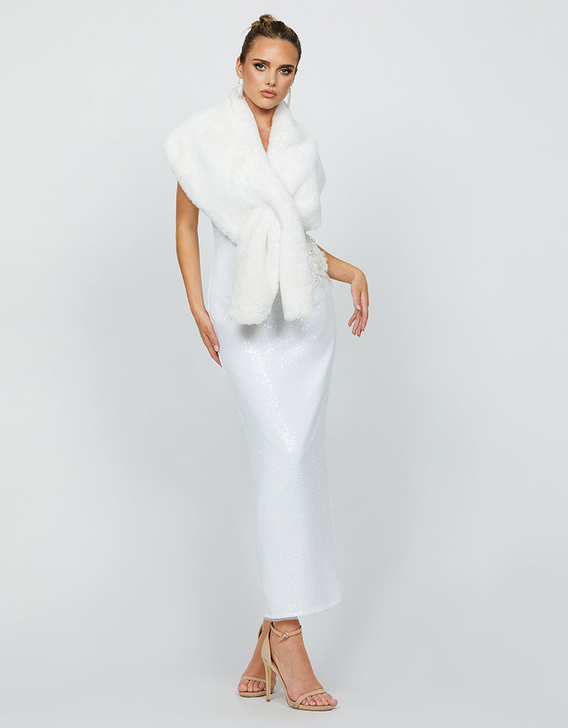 Elevate your look with this luxurious fur shawl, designed for both warmth and glamour. Featuring a twisted wrap front detail, it offers a chic and elegant drape that can be worn on or off the shoulder for versatile styling. The hook and eye fastening ensures a secure fit, while the full satin lining provides a smooth and comfortable feel. Perfect for layering over evening gowns or special occasion outfits, this timeless piece adds a touch of sophistication to any ensemble.