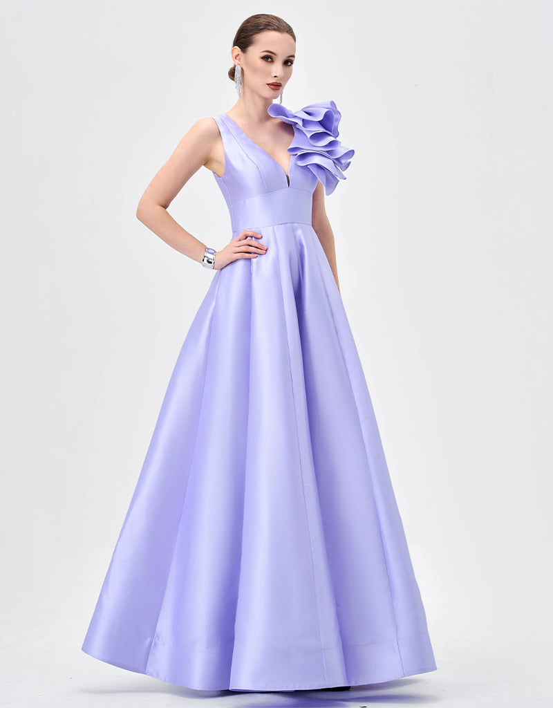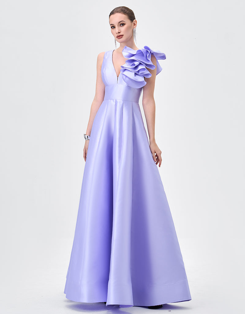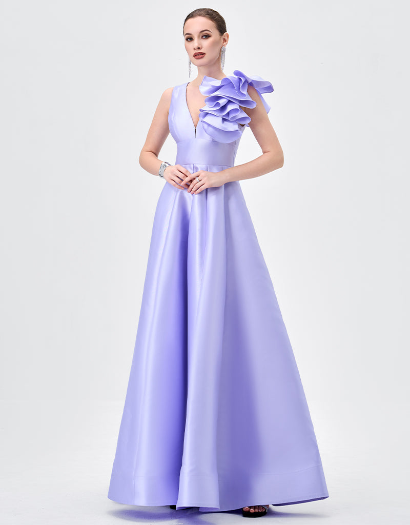 MIRELLA V NECK RUFFLE GOWN B83D01104