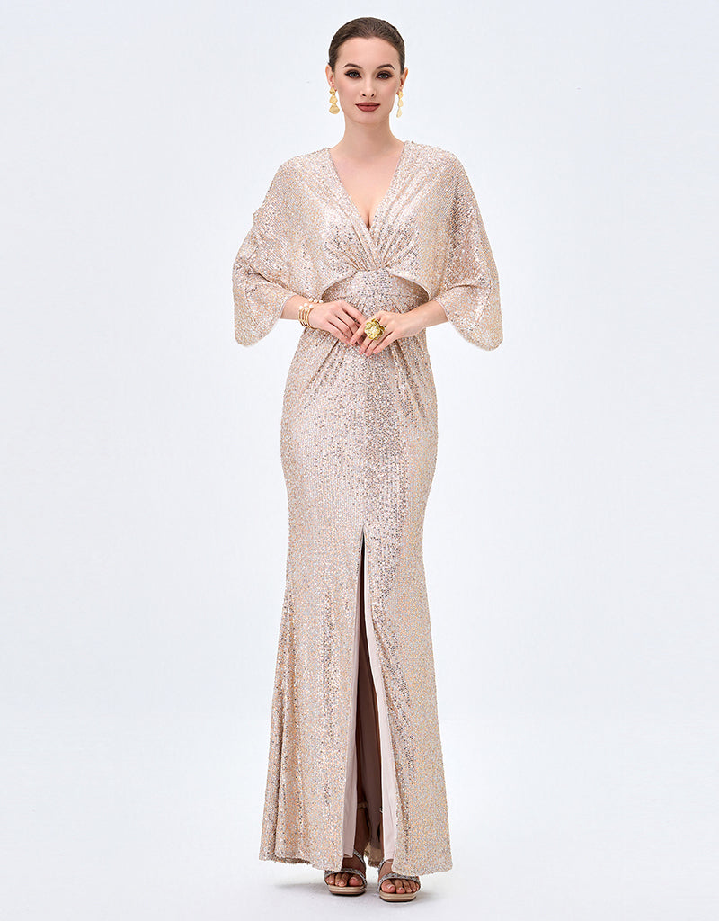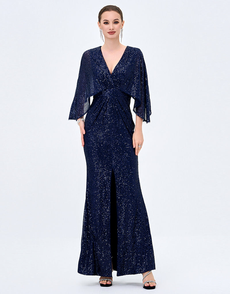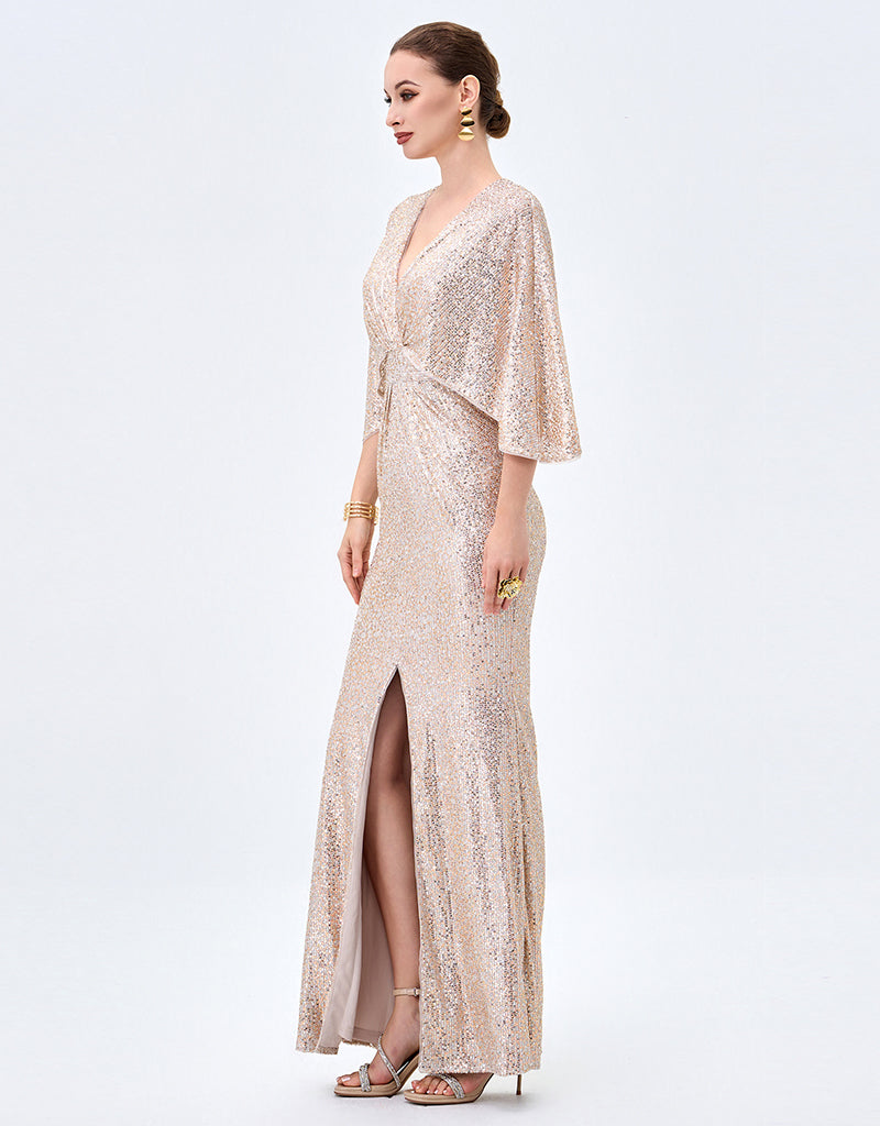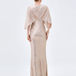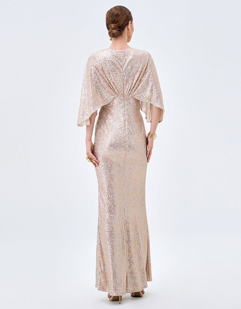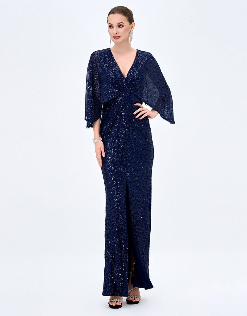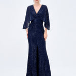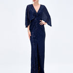Our Cape Gown has very quickly become a fan favourite and is back again. Due to her sophisticated and polished nature, she flatters the body and will ensure you leave your mark at any event. A light batwing sleeve has been balanced beautifully with a draped waist panel and draped skirt with a slight tummy cover. Chic, yet comfortable she is a must!