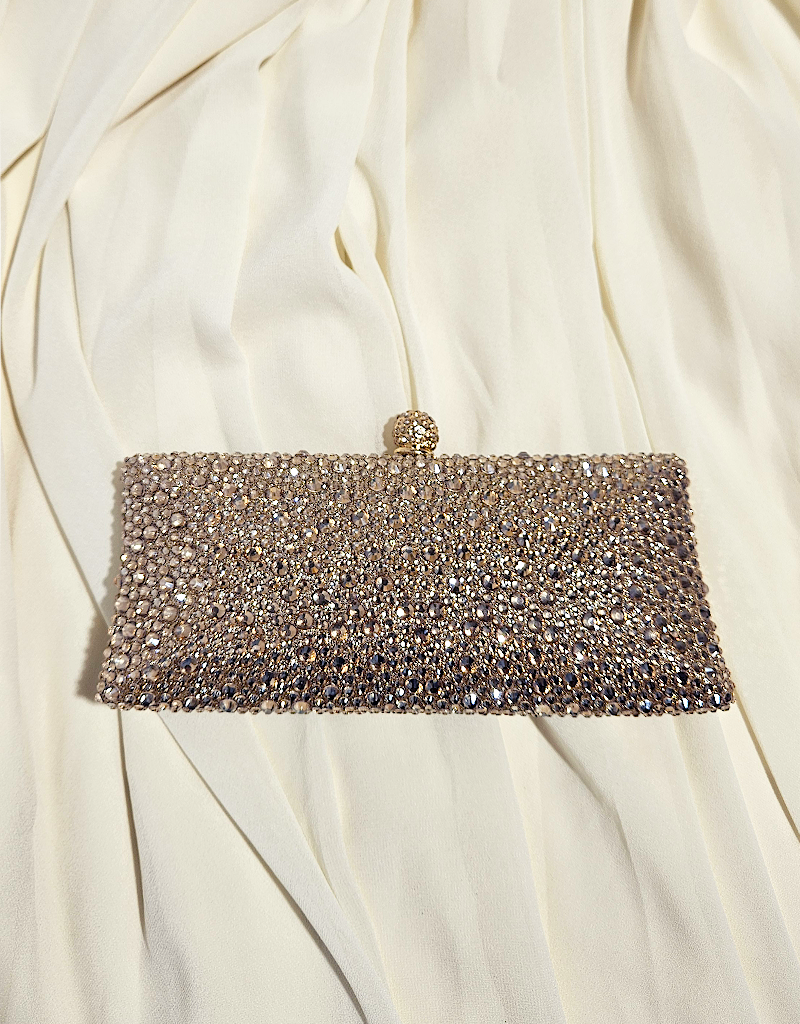 Designed to shimmer from every angle, the Martina Crystal Clutch is the epitome of timeless evening elegance. Encrusted with hundreds of light-reflecting crystals, this structured silhouette brings refined glamour to any event look.